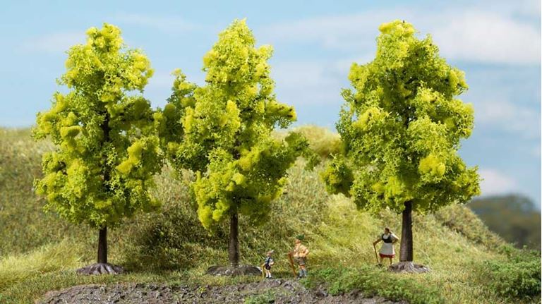 Лиственные деревья светло-зелёные (3 шт., ~110 мм), 1:72—1:120