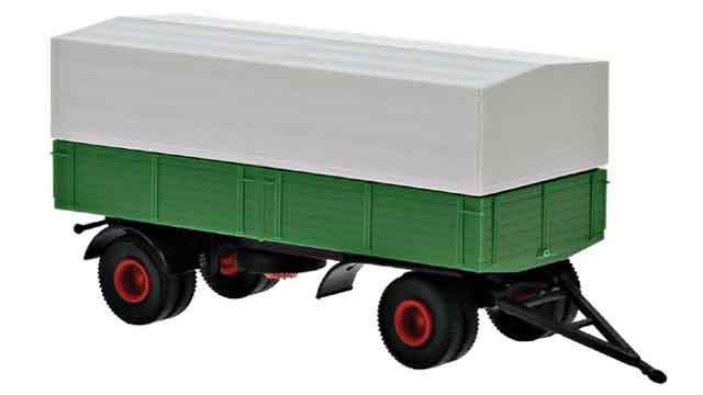 Масштабная модель прицепа с тентом произведена в соответствии оригиналу в историческом и техническом плане. Окраска модели не требуется (цвет зелёный может отличаться от представленного на фото). Рекомендуется для железнодорожных макетов, диорам и миниатюр в масштабе 1/87 (H0).