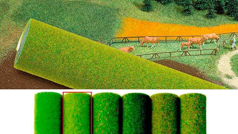 Флокированный материал — имитация травы «Весенний луг» (рулон 2500 × 1000 мм ≈2,5 м²) рекомендуется для размещения на диорамах в масштабах 1/351/721/871/100, 1/250, архитектурных макетах 1:35—1:250, железнодорожных макетах и миниатюрах типоразмера G (1:22,5), 0 (1:45), H0 (1:87), TT (1:120), N (1:160), Z (1:220).