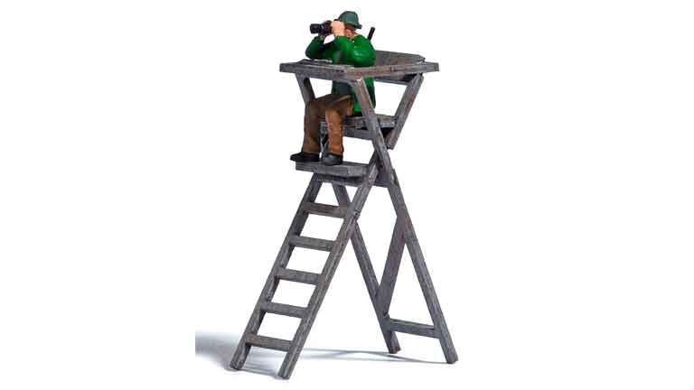 Охотник с биноклем на вышке из натурального дерева, 1:87