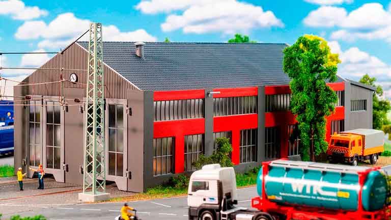 Без труда оба локомотива найдут свое место в двухпутном здании. Кроме того, депо также можно использовать в качестве мастерской или зала технического обслуживания.