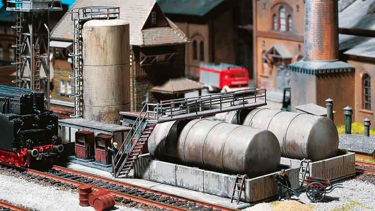 Масштабная модель «Тепловозная заправка» из цветного пластика для самостоятельной сборки. Окраска модели не требуется. Размеры: ~220 x 110 x 105 мм. Клей в набор не входит. Рекомендуется для диорам в масштабе 1/87 и железнодорожных макетов типоразмера Н0 (1:87).