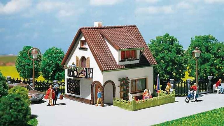 Масштабная модель дома с мансардой из цветного пластика для самостоятельной сборки. Окраска модели не требуется. Размеры: 90 × 80 × 78 мм. Клей в набор не входит. Рекомендуется для диорам и железнодорожных макетов в масштабе 1:87 типоразмера Н0.