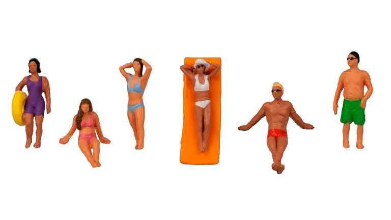 Масштабный модельный набор из 6 окрашенных фигурок «На пляже» из пластика рекомендуется для диорам в масштабе 1/87 и железнодорожных макетов типоразмера Н0 (1:87). Окраска фигур не требуется (цвет, ассортимент и дизайн может отличаться от представленного на иллюстрации).