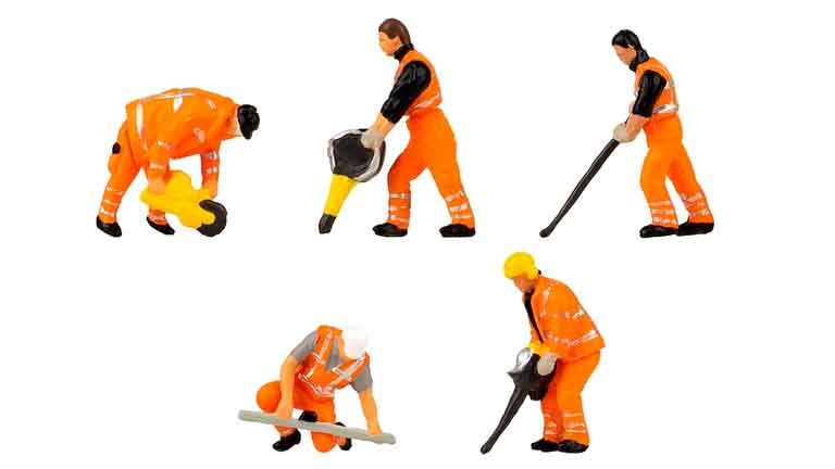 Набор окрашенных вручную фигурок «Рабочие на трассе» из пластика. Рекомендуется для железнодорожных макетов типоразмера H0. Для установки фигурок рекомендуется использовать клей. Возможно размещение в любом месте макета или диорамы.