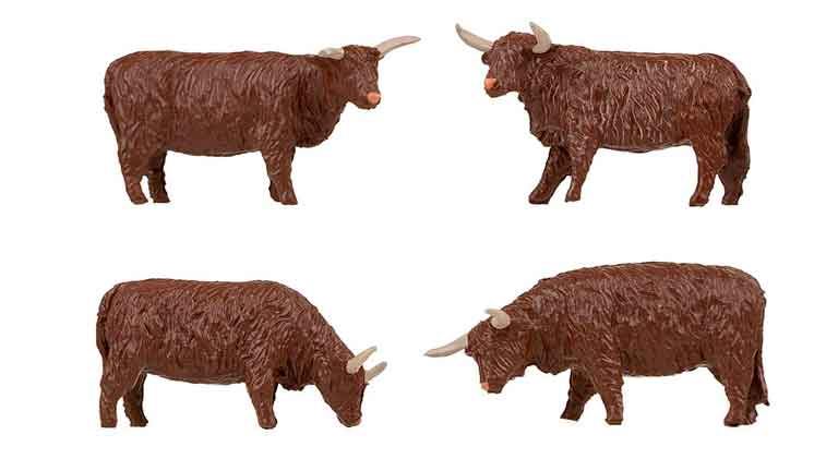 Масштабный модельный набор из 4 окрашенных фигурок «Горный скот коричневый» из пластика рекомендуется для диорам в масштабе 1/87 и железнодорожных макетов типоразмера Н0 (1:87). Окраска фигур не требуется (цвет, ассортимент и дизайн может отличаться от представленного на иллюстрации).
