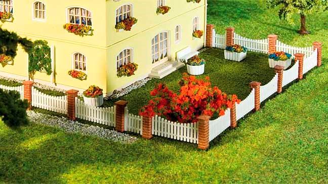 Масштабная модель палисадника (26 частей) из цветного пластика для самостоятельной сборки. Окраска модели не требуется. Размеры: ~385 мм. Клей в набор не входит. Рекомендуется для диорам в масштабе 1/87 и железнодорожных макетов типоразмера Н0 (1:87).