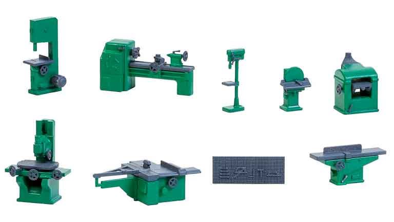 Масштабный модельный набор «Оборудование для мастерской» из цветного пластика для самостоятельной сборки рекомендуется для диорам в масштабе 1/87 и железнодорожных макетов типоразмера Н0 (1:87). Окраска модели не требуется. Клей в набор не входит.