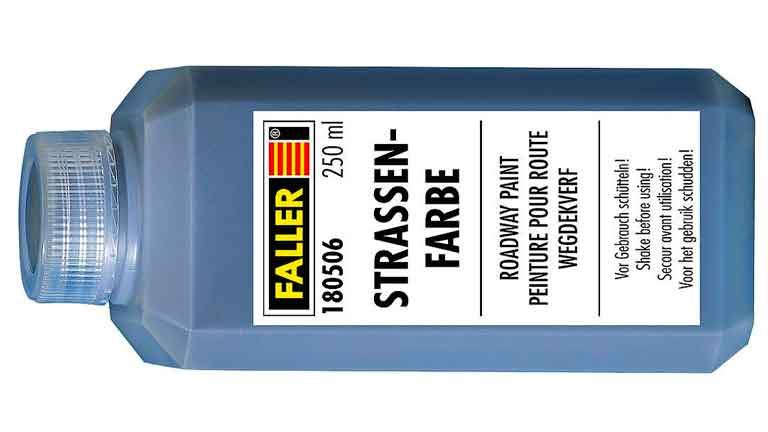 Особенно подходит для дорог FALLER CAR SYSTEM. Также может использоваться для окрашивания скальных рисунков или для маскировки дефектов в панелях из твердой пены.