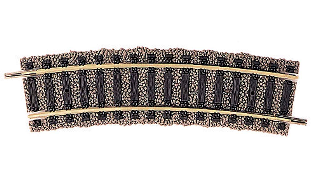 Радиусный рельс Fleischmann PROFI-GLEIS R1 R=356,5 мм. 18° (20 штук на круг) на баластной призме. Рекомендуется для железнодорожных макетов в масштабе 1:87 (H0) и 1:76 (00).