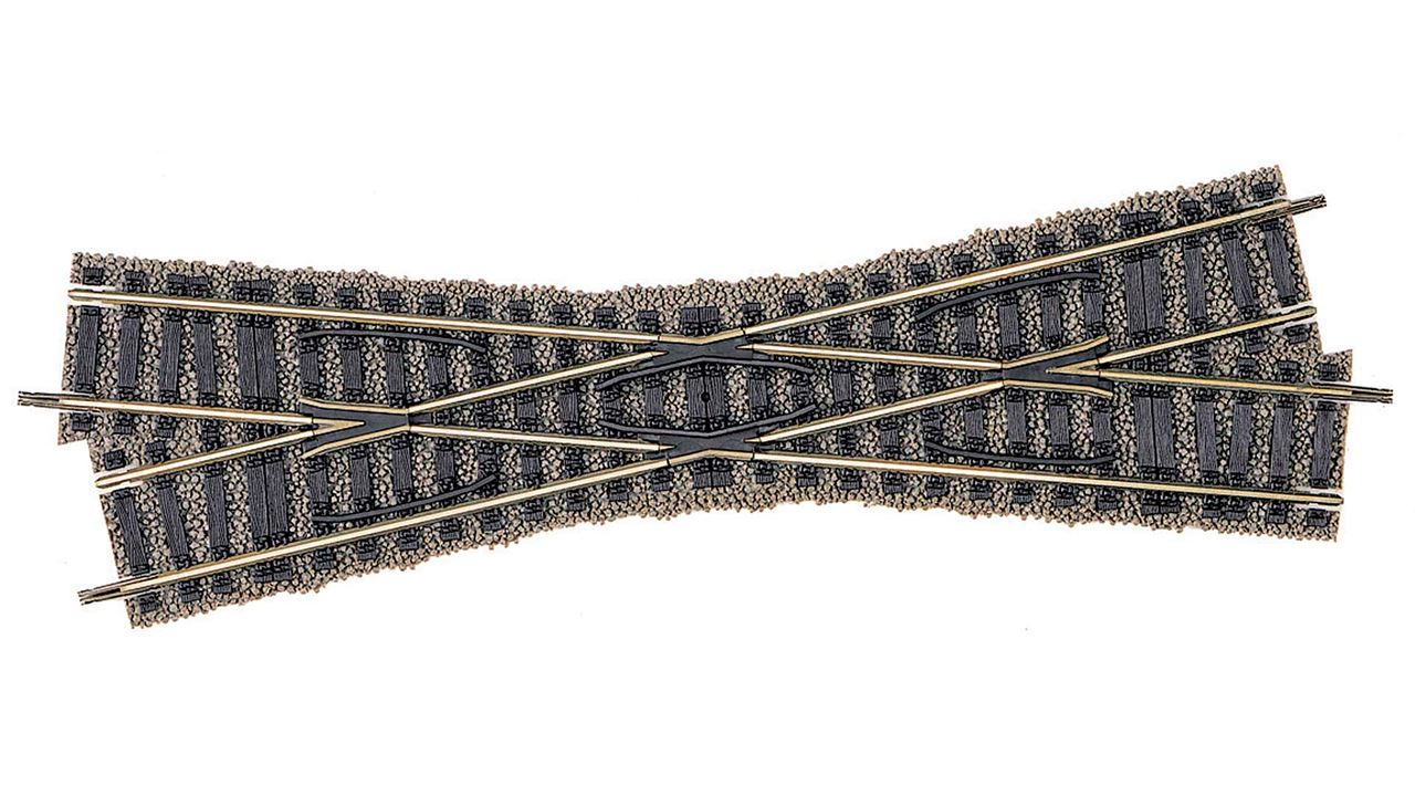 Перекрестье рельсовое правое Fleischmann PROFI-GLEIS 200 мм 18°° (20 штук на круг) на баластной призме рекомендуется для железнодорожных макетов в масштабе 1:87 (H0) и 1:76 (00).