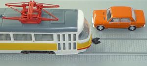 Имитация проезжей части с проходящей по середине трамвайной линией уложенной на небольшом возвышении в брусчатку. Так же возможно использование для создания производственных территорий и прочих железнодорожных подъездных путей. Панель из пластика размером 120 × 200 мм.