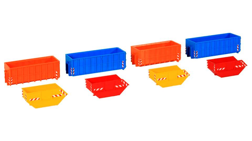 Набор 8 контейнеров из цветного пластика. Рекомендуется для железнодорожных макетов типоразмера H0 и TT. Клей в набор не входит. Возможно размещение в любом месте макета или диорамы.