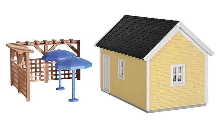 Масштабная модель «Садовый домик» из цветного пластика для самостоятельной сборки. Окраска модели не требуется. Размеры: ~200 × 120 × 50 мм. Клей в набор не входит. Рекомендуется для диорам в масштабе 1/72—1/100 и железнодорожных макетов типоразмера Н0 (1:87).
