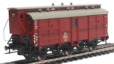 Масштабная модель 3-осного Gvwhs 04 вагона для перевозки лошадей с кабиной управления Deutsche Bundesbahn (Германия). Длина вагона ~117 мм. Сцепки NEM 362 с закрытым механизмом сцепления. Окраска модели не требуется. Рекомендуется для железнодорожных макетов типоразмера H0.
