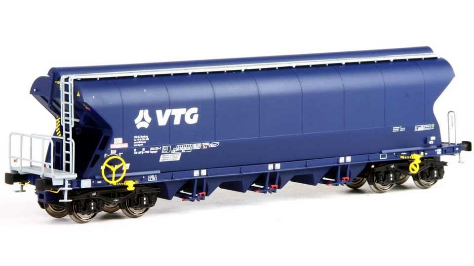 Масштабная модель вагона зернового хоппера (3280 0764 224-2) VTG®. Сцепки NEM 362 с закрытым механизмом сцепления. Окраска модели не требуется. Рекомендуется для железнодорожных макетов типоразмера H0 (1:87).