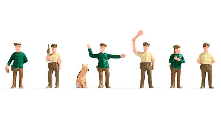 Масштабный модельный набор из окрашенных фигурок «Полицейские и собака» из пластика рекомендуется для диорам в масштабе 1/87 и железнодорожных макетов типоразмера Н0 (1:87). Окраска фигур не требуется (цвет, ассортимент и дизайн может отличаться от представленного на иллюстрации). Для установки фигурок рекомендуется использовать термоклей.