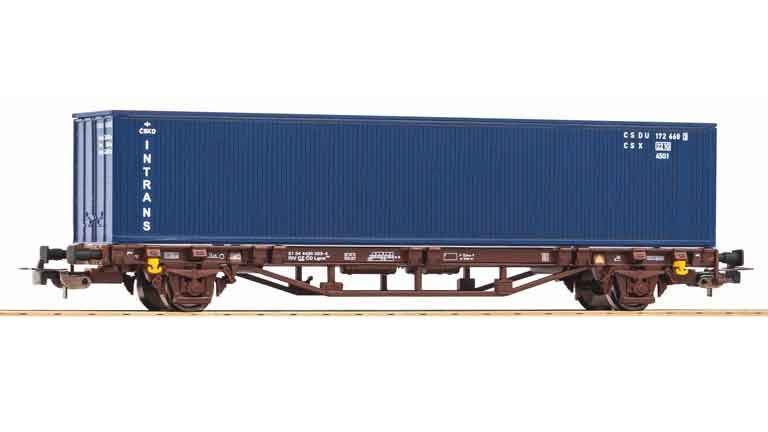 CD контейнерный вагон в Era V с 40-футовым контейнером от Intrans. Модель вагона имеет прикрепленные детали и впечатляет своими отличными характеристиками качения.