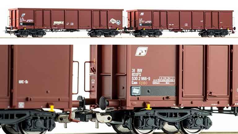 Коллекционный состав «Полувагоны Eaos с граффити» (2 вагона)» рекомендуется для железнодорожных макетов в масштабе 1/87 типоразмера H0 с закрытым механизмом сцепления (KK-Kinematik). Длина состава по буферам ~322 мм. Окраска моделей не требуется.
