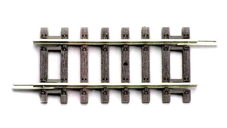 Прямой рельс G107 длинной ~107,32 мм рекомендуется для железнодорожных макетов в масштабе 1:87 (H0). Шпальная решетка - под дерево. Совместим с путевым материалом Н0.