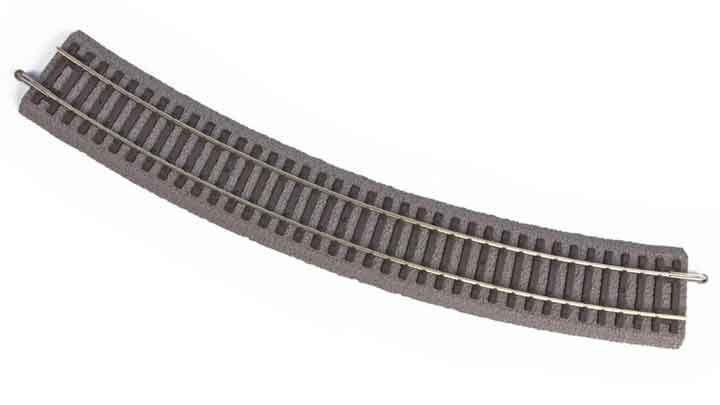 Рельс радиусный PIKO R4 546 мм на прочной пластиковой призме имитирующую железнодорожную балластную насыпь. Шпальная решетка - под дерево. Рекомендуется для железнодорожных макетов в масштабе 1:87 (H0).