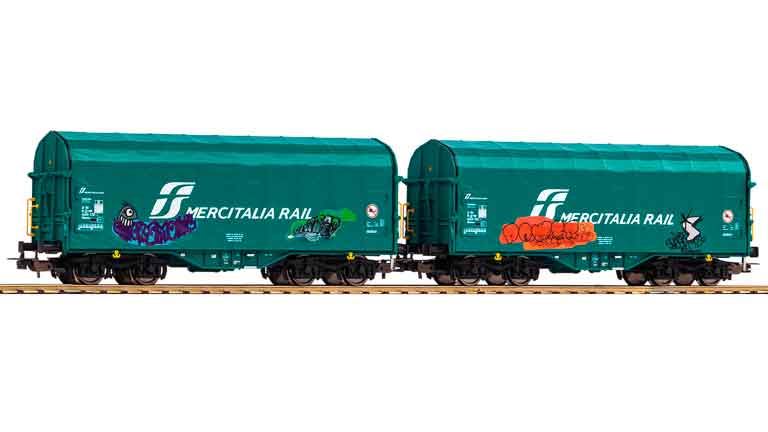 Масштабные модели 2-осных вагонов крытых брезентом Shimmns «MERCITALIA RAIL» с граффити произведены в полном соответствии оригиналу в историческом и техническом плане. NEM 362 с закрытым механизмом сцепления. Длина по буферам ~417 мм. Окраска моделей не требуется. Рекомендуется для железнодорожных макетов, диорам и миниатюр в масштабе 1/87 типоразмера H0.
