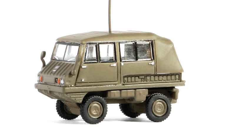 Масштабная модель вездехода Puch Haflinger® произведена в соответствии оригиналу в историческом и техническом плане. Окраска модели не требуется. Рекомендуется для железнодорожных макетов, диорам и миниатюр в масштабе 1/87 (H0).