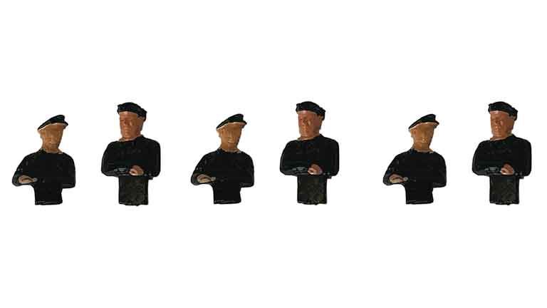 Масштабный модельный набор из 6 окрашенных фигурок «Машинисты и кочегары» из пластика рекомендуется для диорам в масштабе 1/87 и железнодорожных макетов типоразмера Н0 (1:87). Окраска фигур не требуется (цвет, ассортимент и дизайн может отличаться от представленного на иллюстрации). Для установки фигурок рекомендуется использовать термоклей.