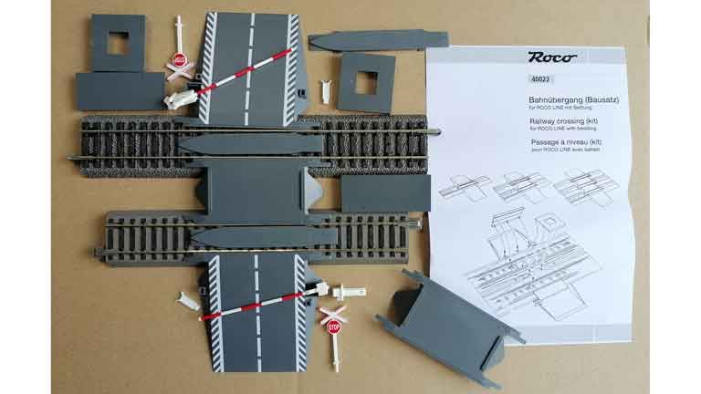 Пандусы подъёма, шлагбаумы, знаки и переездные покрытия между рельсами в комплекте.