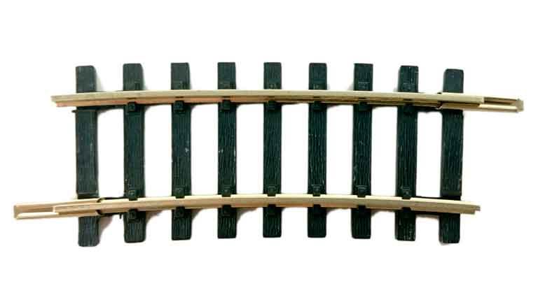 Радиусный рельс R5 7°30. Высота рельса 2,5 мм. Шпальная решетка - под дерево. Рекомендуется для железнодорожных макетов в масштабе 1:87 (H0) и 1:76 (00).