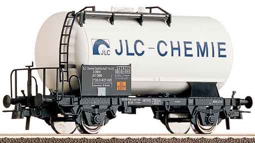 Масштабная модель железнодорожной цистерны «JLC Chemie» (2-осная). Длина по буферам ~102 мм. Сцепки NEM 362 с закрытым механизмом сцепления. Окраска модели не требуется. Рекомендуется для железнодорожных макетов типоразмера H0 (1:87).