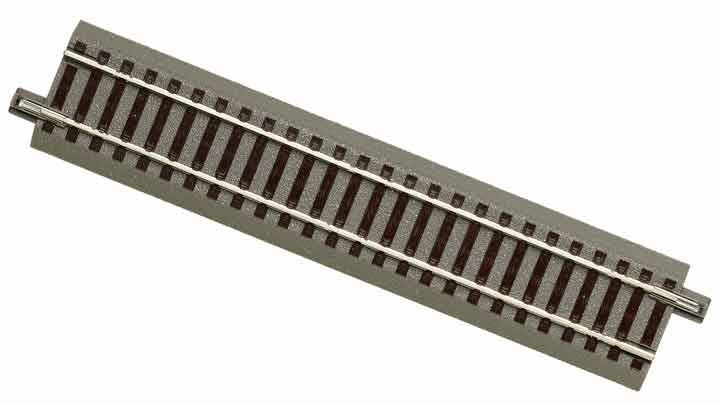 Прямой рельс ROCO geoLINE G185 длинной ~185 мм на прочной пластиковой призме имитирующую железнодорожную балластную насыпь. Рельсошпальная решетка — под дерево. Окраска модели не требуется. Рекомендуется для железнодорожных макетов, диорам и миниатюр в масштабе 1/87 типоразмера H0.