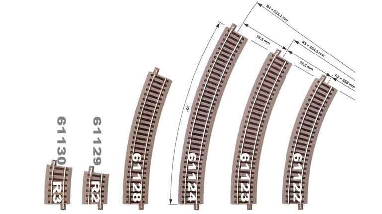 — похожие на Радиусный рельс на призме R3 (434,5 мм 30°), H0, geoLINE .