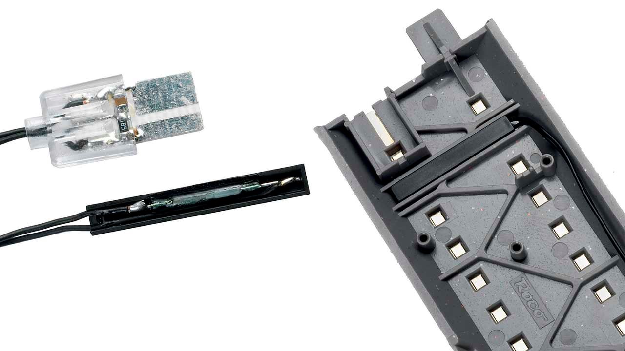 Датчик сигнализирующий прохождение участка подвижным составом для рельс geoLINE. Рекомендуется для железнодорожных макетов в масштабе 1:87 (H0).