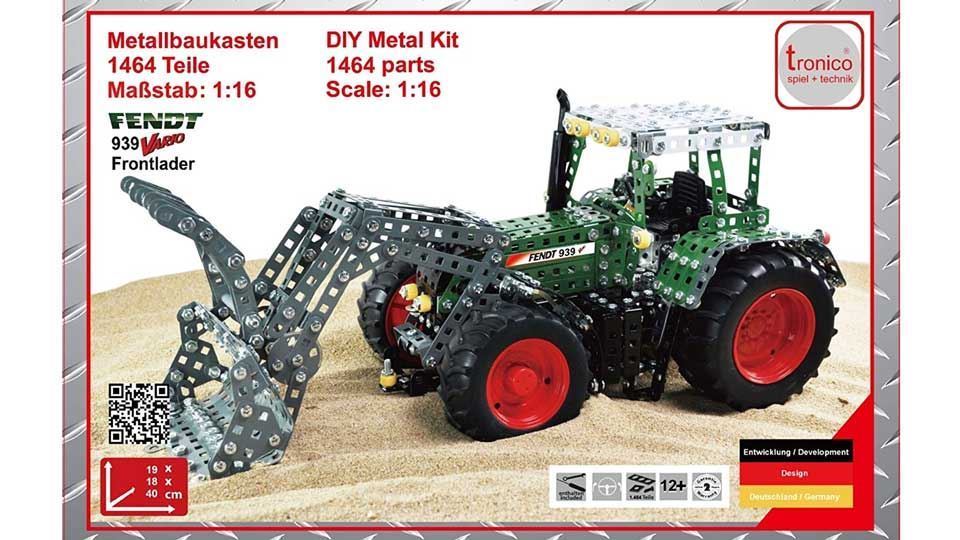 Модель трактора с фронтальным погрузчиком «Fendt 939» из металлических деталей. Серия конструктора: Tronico® Professional. В наборе 1445 деталей. Масштаб 1:16. Рекомендуемый возраст 12+.