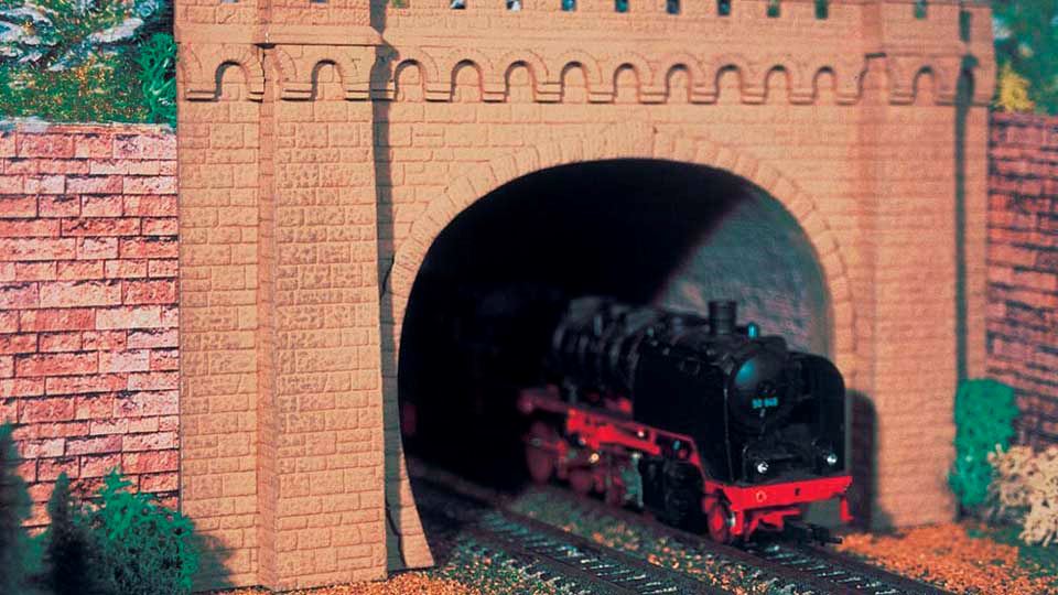 Масштабная модель двухпутного тоннельного портала «Moseltal» из цветного пластика. Окраска модели не требуется. Высота арки 95 мм. Упаковка — 2 арки тоннеля. Рекомендуется для диорам в масштабе 1/87 и железнодорожных макетов типоразмера Н0 (1:87).