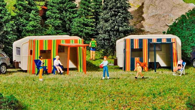 Кемпинг (2 автомобильных трейлера и 2 кемпера), 1:87
